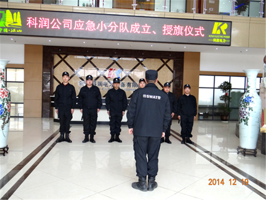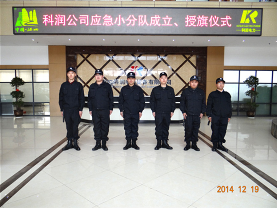 12月19日下午,科潤電力科技股份有限公司應(yīng)急小分隊(duì)在公司一樓大廳舉行成立授旗儀式。公司總經(jīng)理、各分廠、部門負(fù)責(zé)人、江山市公安局城南派出所、市特警大隊(duì)警官作為特邀警民對接指導(dǎo)嘉賓出席了成立儀式。成立儀式在的雄壯的國歌聲中開始。