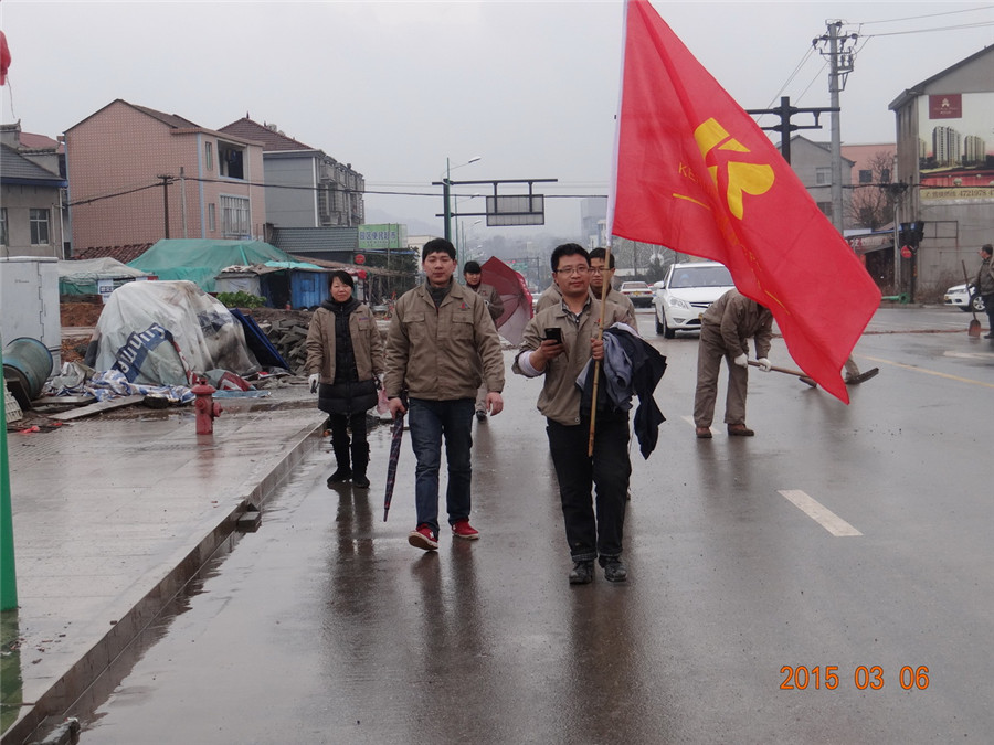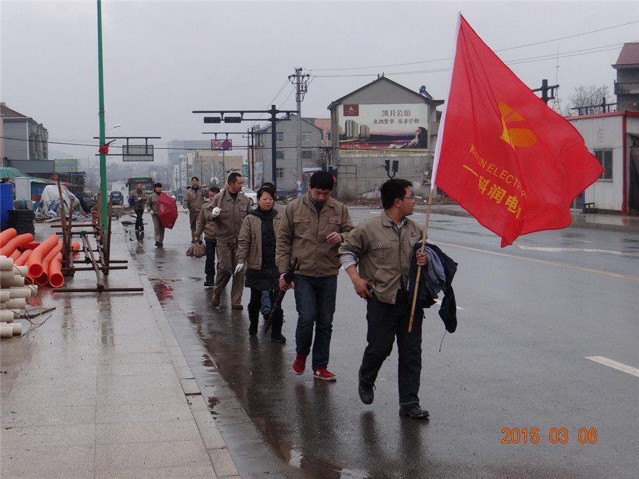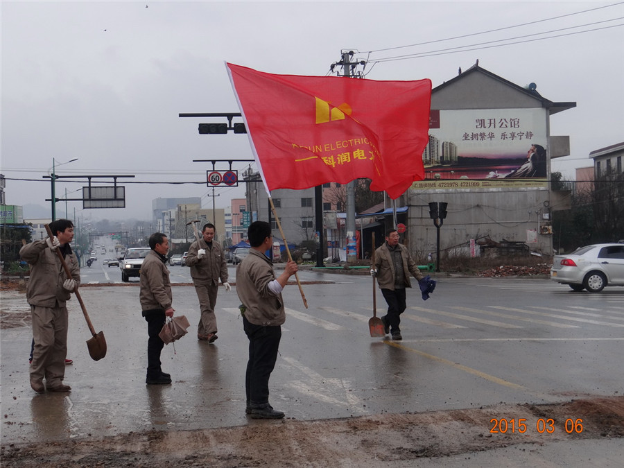 2015年3月6日上午,科潤(rùn)電力科技股份有限公司黨支部、工會(huì)、婦聯(lián)、共青團(tuán)組織相關(guān)人員,舉行迎三八節(jié)學(xué)雷鋒義務(wù)修路活動(dòng),對(duì)江山經(jīng)濟(jì)開發(fā)區(qū)山海協(xié)作園區(qū)的創(chuàng)業(yè)路、協(xié)作路交叉路口的部分坑洼路面進(jìn)行修填。