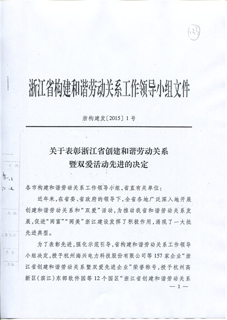 喜訊:科潤公司被評為浙江省創建和諧勞動關系暨雙愛先進企業