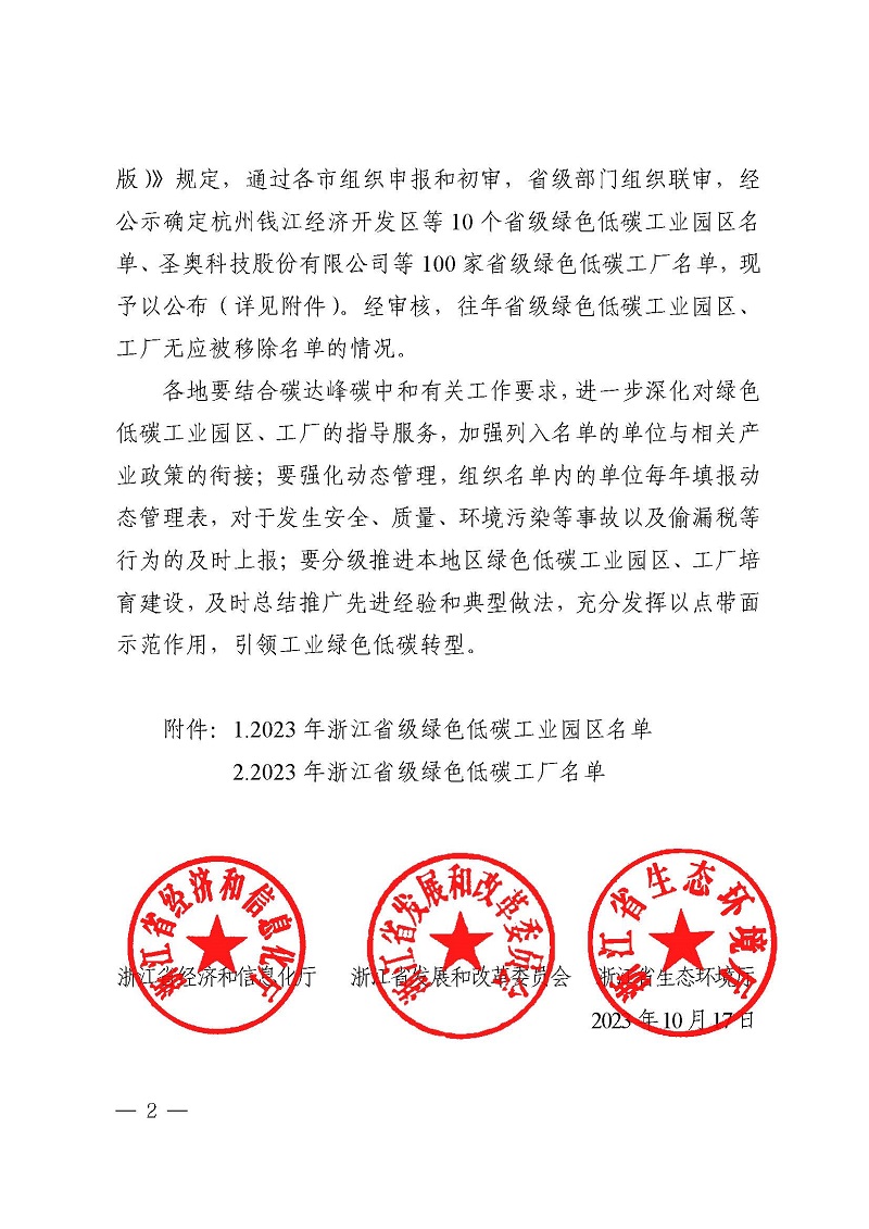 熱烈祝賀公司獲評2023年浙江省級綠色低碳工廠
