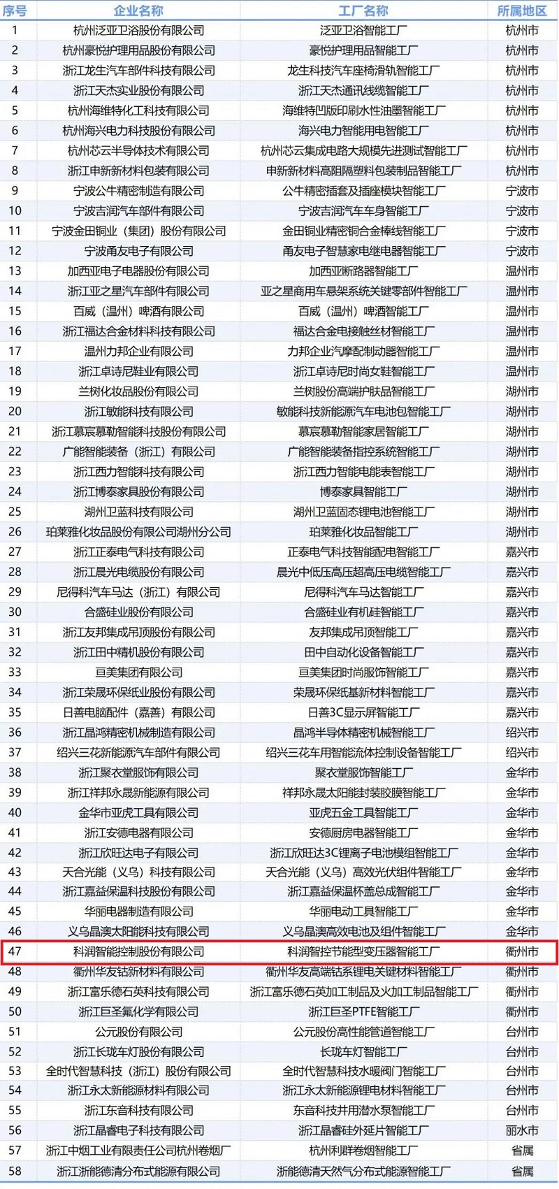 根據(jù)《關(guān)于開展2023年浙江省未來工廠和智能工廠(數(shù)字化車間)評(píng)定及首批復(fù)評(píng)工作的通知》,經(jīng)企業(yè)自主申報(bào)、地方推薦和專家評(píng)審,確定“科潤智控節(jié)能型變壓器智能工廠”為省級(jí)智能工廠。